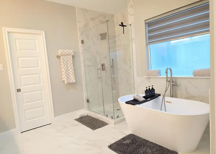 The Pershing Pad Is At A Central Location 3Br Sleeps 10 villa comes with a bathroom with a hot tub and a washing machine. Hair dryers and towels are included for added comfort.